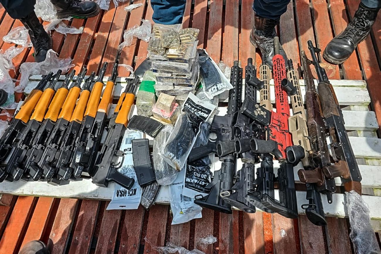 Foto: DivulgaçãoUma ação da Polícia Militar do Estado do Pará com apoio da Polícia Civil realizou, na manhã desta terça-feira, 5, a maior apreensão de armamentos do tipo fuzil, no estado do estado. Ao todo, foram apreendidos 16 fuzis AK-47 que eram transportados em uma embarcação vinda do Suriname. Durante a ação, quatro homens foram presos em flagrante.