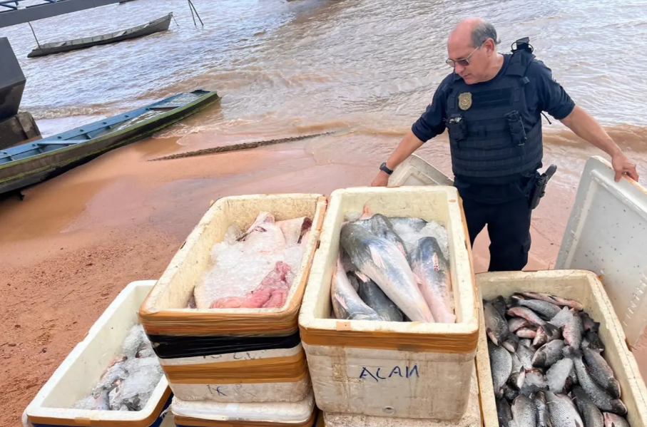 A Base Integrada Fluvial Candiru, no município de Óbidos, oeste paraense, coordenada pela Secretaria de Estado de Segurança Pública e Defesa Social (Segup), apreendeu 559 quilos de pescado, transportados de forma irregular, durante fiscalização. Na abordagem à embarcação F/B Golfinho do Norte, que fazia o trajeto entre Manaus (AM) e Monte Alegre (PA), as equipes constataram a ausência de documentação obrigatória, como Declaração de Estoque e Guia de Trânsito, o que impossibilitou a comprovação da procedência do pescado.