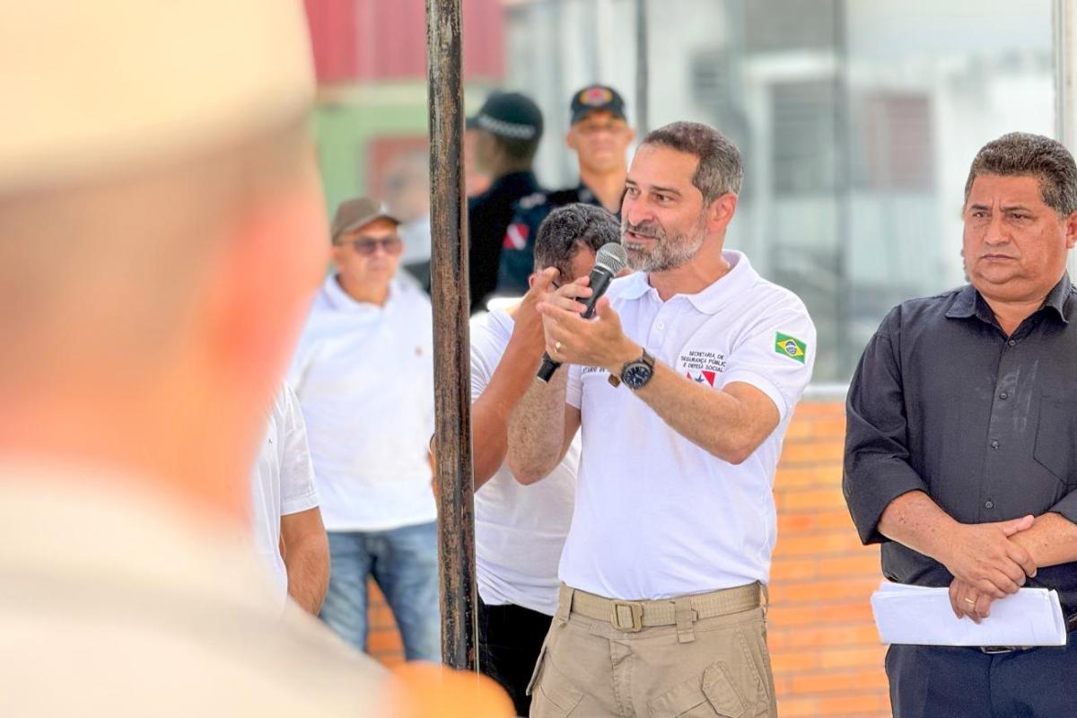 Integração – Também estiveram presentes no lançamento, o delegado-geral de Polícia Civil, Walter Resende; o diretor-geral de Operações da Polícia Militar, coronel Neves; o tenente-coronel Guilherme Torres, comandante do Grupamento dos Bombeiros Militar do município, e autoridades locais, como o prefeito Pio X.