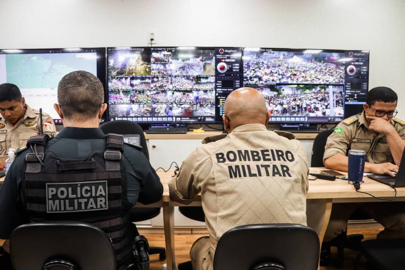 No Centro Integrado de Comando e Controle (CICC) Móvel, instalado no Largo do Redondo, na Avenida Nazaré, as equipes visualizaram, em tempo real, o movimento nas ruas por meio das mais de 60 câmeras da Segup distribuídas nas vias que fazem parte do cortejo.