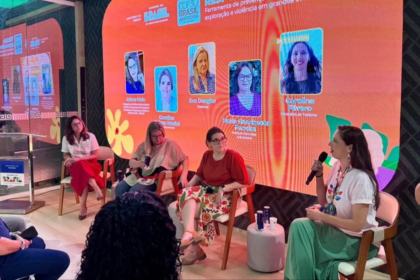 “Hoje, tivemos aqui na COP30 um painel especial para falarmos sobre prevenção à exploração sexual de crianças e adolescentes em grandes eventos. Isso é muito importante para mostrarmos todo o planejamento e o trabalho que foram feitos antes da COP. Podemos explorar e conhecer mais sobre a operação ‘Curupira Mirim’, que foi apresentada hoje no painel. Essa foi uma operação integrada com diversos ministérios, com parcerias da Secretaria de Segurança Pública do Pará, onde atuamos em diversos locais em Belém, no entorno, e também na região do Marajó. Tivemos também ações com o Instituto Mondó, que fez um trabalho com o Sebrae, de negócios protetivos. Tratamos ainda com a representante da Childhood Brasil, que também trouxe um pouco da experiência de grandes eventos que o Brasil já teve, e o que foi feito aqui na COP30, como ações de prevenção, com atores locais, capacitação para que eles saibam identificar uma possível conduta criminosa e como eles podem recorrer e a quem ligar, o que fazer no caso de situação onde crianças e adolescentes possam estar expostos a situações vulneráveis”, disse Carolina Fávero.