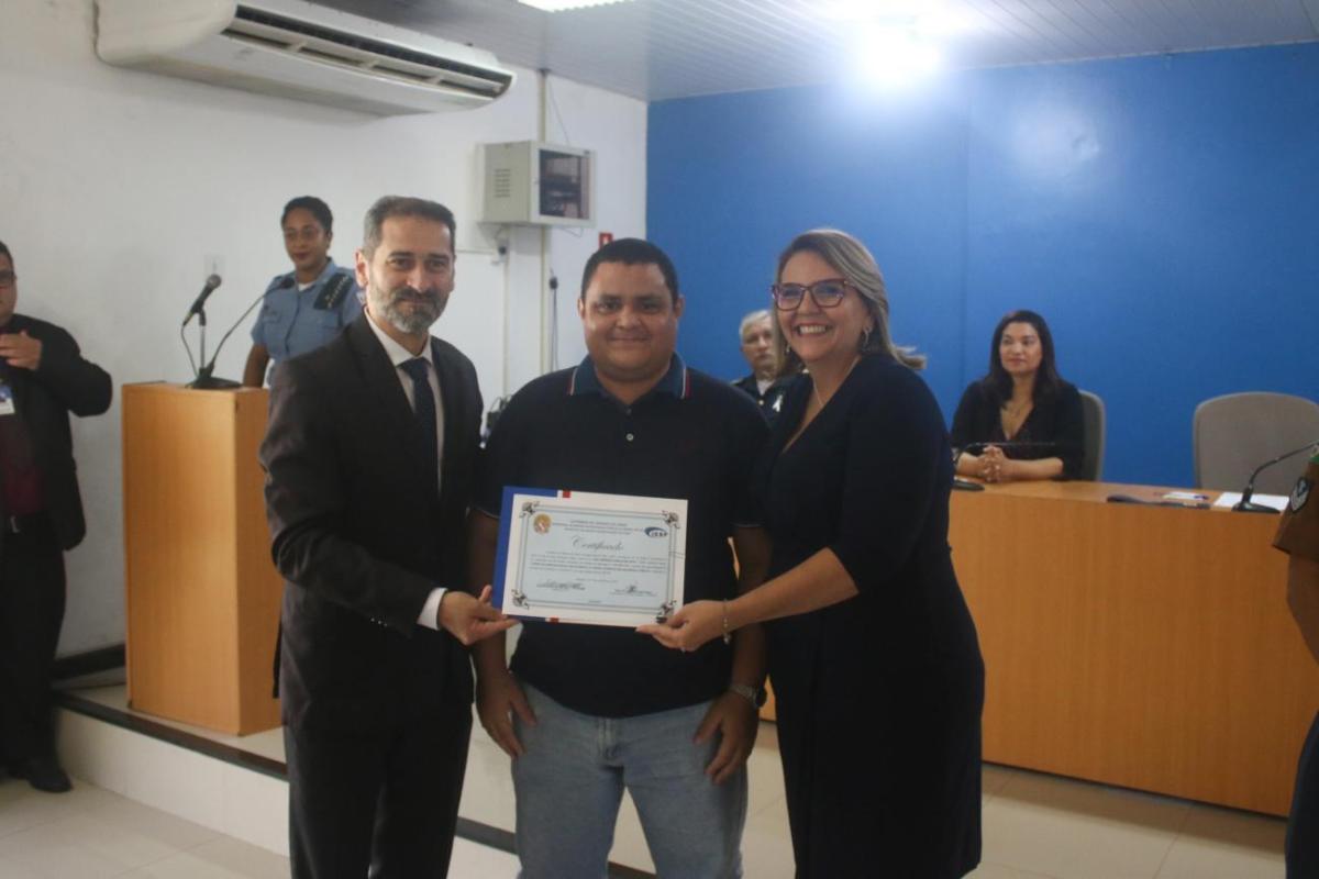 A Secretaria de Estado de Segurança Pública e Defesa Social (Segup), por meio do Instituto de Ensino de Segurança (Iesp), realizou a solenidade de conclusão do Curso de Especialização em Docência do Ensino Superior em Segurança Pública, que oferece elementos conceituais sobre a prática pedagógica docente e gestão de ensino, além da capacitação interdisciplinar, transdisciplinar e transversal. São 32 concluintes do Sistema Estadual de Segurança Pública (Sieds) e de órgãos parceiros. A cerimônia ocorreu nesta sexta-feira (16), no auditório do Iesp, em Marituba (Região Metropolitana de Belém).