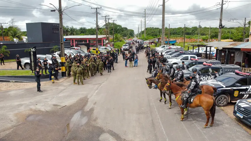 Mais de 300 agentes de segurança integram as ações em combate à atividades ilícitas nas regiões do entorno da estação de tratamento de resíduos sólidos do bairro do Aurá, em Ananindeua, popularmente conhecido como “Lixão do Aurá”, desativado em 2015. Diversas ações ostensivas foram iniciadas com um briefing às 10h, em um ponto próximo à área operacional.