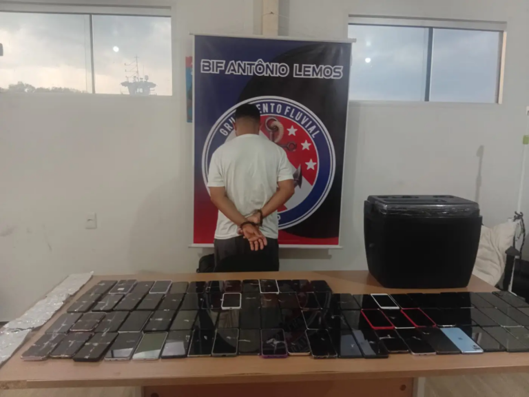 Fiscalização da Base Fluvial Antônio Lemos apreende 82 celulares e prende homem