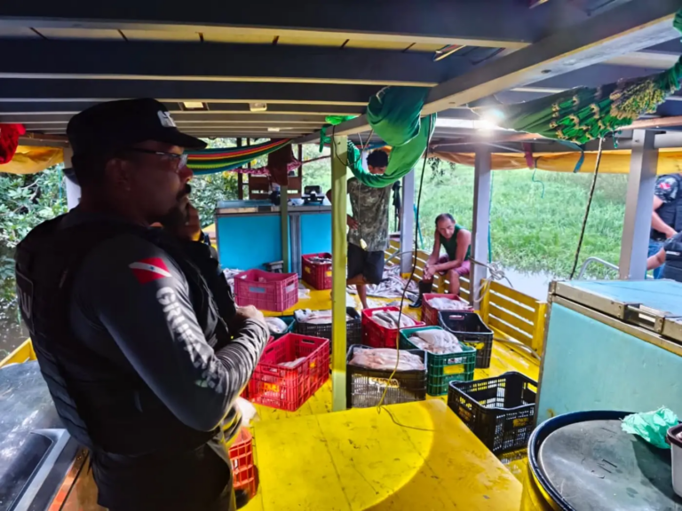 ... e Defesa Social (Segup), resultou na interceptação de aproximadamente cinco toneladas de peixe da espécie mapará (Hypophthalmus edentatus) na região do Lago Grande...